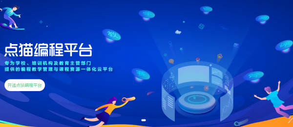 1.点猫编程平台:面向中小学校园、教育主管部门的人工智能教育教学管理与课程资源一体化云平台,涵盖“备、教、学、练、测、评、管、析、赛、库”等教学管理场景,便捷高效的支撑中小学开展课程教学、数据管理决策和双师教学、赛考应用等多种场景。